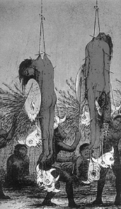 В североамериканском племени манданов мальчиков, проходящих инициацию посвящения в воины, подвергают мучительной процедуре подвешивания за кожу (Рис. 4), прикрепляя к их поясам черепа животных.