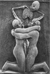 Другой ответ мы можем найти на одном из могильных камней, изображающих влюбленных, крепко прижимающих друг друга (Фото 3). Смерть на этом изображении, вторгаясь в этот контакт, – пытается разъять влюбленных.