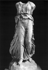 Применительно к отпусканию телесных импульсов представляет интерес проблема невынашиваемости у женщин или проблема невозможности зачатия. Как показывает опыт танатотерапевтической помощи таким женщинам, в том числе и наш (Баскаков В., 2002), у таких женщин – колоссальный контроль со стороны сознания. И именно этот контроль блокирует своеобразный «биологический автоматизм» родов (в терминологии Вильгельма Райха – «оргастическую конвульсию»). В этой связи, идеал рожающей женщины для известного отечественного специалиста и родоначальника родов в воду Игоря Чарковского – это известная скульптура безголовой Ники (Фото 4).