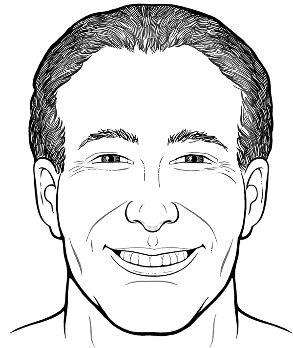 Гнев выражают брови, глаза и рот. Брови опускаются и сходятся, подчеркивая вертикальные складки. Верхние и нижние веки слегка сближаются, суживая глаза, холодный взгляд устремляется на то, что породило гнев. Губы сжимаются, уголки их немного опускаются. Нос тоже участвует в процессе – некоторые люди раздувают ноздри, когда сердятся.