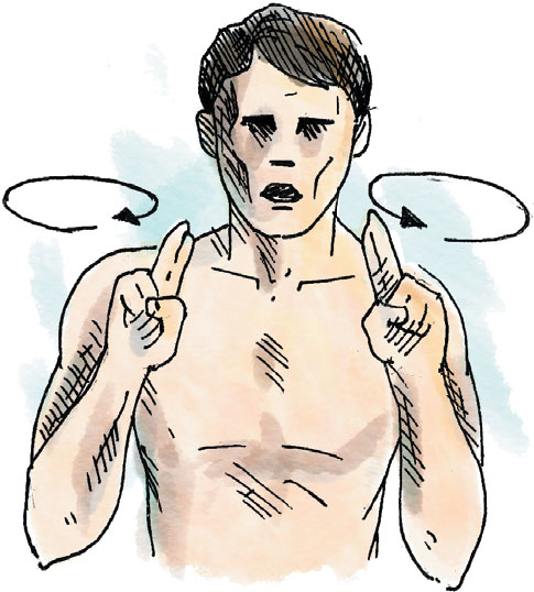 – Второе упражнение проще, – неумолимо продолжал Наставник, – локти опущены и неподвижны, пальцы держим вытянутыми вверх около плеч и делаем вращательные движения рукой от локтя, так чтобы вытянутые пальцы описывали круги в горизонтальной плоскости. Правая рука движется по часовой стрелке, левая – против. И не надо делать вид, как будто вы стекла протираете!