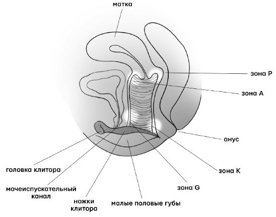 То, что обычно люди называют клитором – маленькая «пимпочка» в верхней части соединения малых половых губ – является всего лишь головкой клитора. Весь клитор целиком может достигать размеров 10–20 сантиметров – это очень индивидуально. Его ножки располагаются под большими половыми губами.