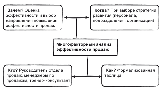 Далее, по заранее обговоренной схеме, опишем сам инструмент «Многофакторный анализ эффективности продаж», включая алгоритм его проведения и пример, как он работает на практике.