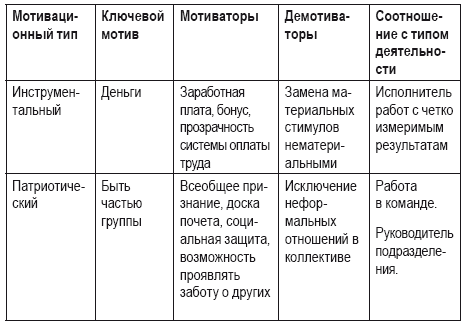 Таблица 3. Кто за что работает? Мотивационные типы по В.И. Герчикову