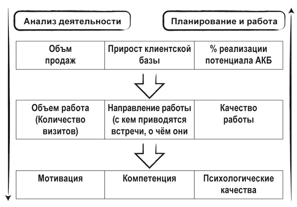 При наличии существенных расхождений между плановыми и реальными показателями мы переходим на следующий уровень анализа – ответа на вопрос, каков же уровень личного вклада в достижение количественных показателей. Ключевые параметры личного вклада также должны быть предельно измеримыми и понятными для человека. Мы в своей модели предлагаем использовать следующие параметры: