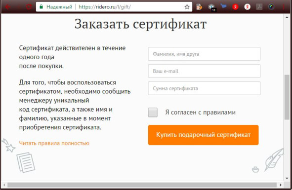 Скриншот страницы ridero.ru/l/gift/.