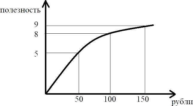 В случае проигрыша ваши убытки в условных единицах полезности по величине будут больше, чем выигрыш (3 против 1 условной единицы). Хотя в денежном выражении и проигрыш и выигрыш равны 50 руб. каждый. Именно потому, что рассуждая в терминах полезности ситуация выглядит иначе, чем рассуждая в терминах денег и необходимо различать математическое ожидание суммы выигрыша и её ожидаемую полезность.