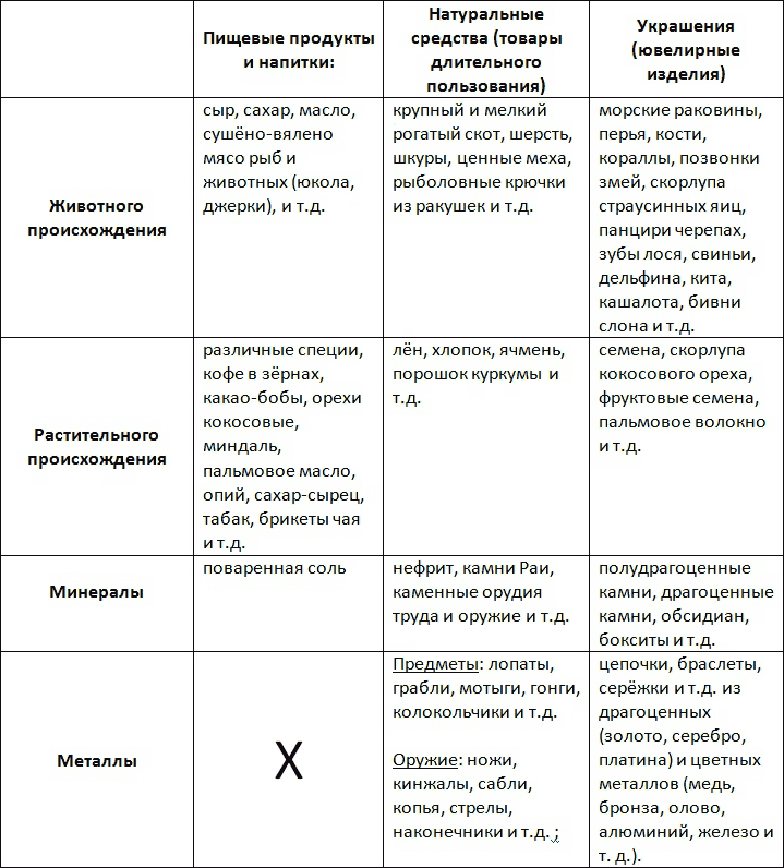 Если попытаться резюмировать все многообразие товарных денежных средств, мы получим следующую структуру товарных денег или «Матрицу товарных денег»©: