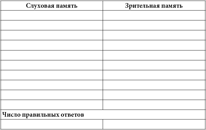 А теперь запишите слова, которые вы запомнили, в табл. 4. Сверьте записанные вами слова со списком, подсчитайте число правильных ответов.