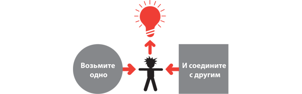 Знаменитый специалист по рекламе Джерри Делла Фемина говорит: «Креативность — это умение быстро соединять в голове многие моменты, которые ты видел или слышал. Чем больше ты увидел и сделал, тем легче тебе найти творческое решение». Автор многочисленных бестселлеров сказал, что, когда человек соединяет в голове разные идеи, его охватывает чувство внутреннего удовлетворения. «В писательстве я больше всего люблю момент, когда все мои мысли чудесным образом соединяются». И когда вы связываете одно с другим, в сумме это дает больше двух. «Две прежде не связанные друг с другом идеи соединяются, и появляется нечто совершенно новое». Так что объединяйте идеи, и это приведет вас к успеху.
