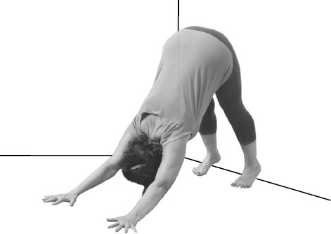 Развернитесь спиной к стене, наклонитесь вперед и поставьте ладони на пол на расстоянии примерно метра от стены. Поместите пятки на плинтус или на высоту 5–10 см от пола, прижмите к полу подушечки под пальцами ног. Чтобы вес тела в этом варианте позы не падал на руки, активно отталкивайтесь ладонями от пола и вытягивайтесь в направлении потолка и стены. Расслабьте живот, шею и голову. Дышите спокойно. Останьтесь в позе 30–40 секунд. На выдохе опуститесь в Адхо мукха вирасану и расслабьтесь.