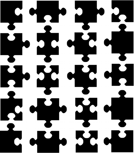Посмотрите на рисунок. У некоторых пазлов есть пара, а у некоторых нет. Найдите все парные пазлы.