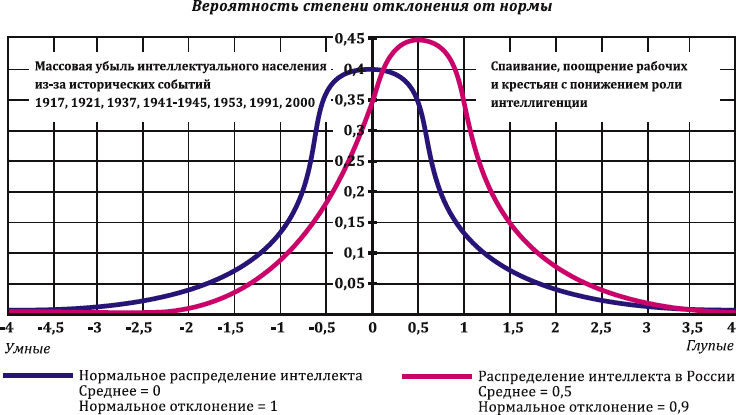 В России и кривая распределения интеллекта отличается от соответствующей кривой в нормальном обществе