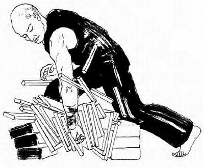 Нужно понять, какой же эффект необходимо ожидать от данных упражнений. Они должны вызывать ощущение прилива крови к рукам. Руки как бы опухают. Многие совершают грубую ошибку, когда только начинают практиковать упражнения по развитию «железной ладони»: стараются производить сильные удары и пытаются очень долго стоять у стены на кулаках, превозмогая усталость. Практикуя таким образом, через некоторое время занимающийся получает травмы рук. На какое-то время придется прекратить тренировки. Бывает, что ученик, невзирая на совет мастера тренироваться полегче, продолжает занятия, в результате чего получает серьезные травмы, из-за которых приходится прекращать тренировки.