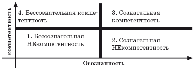 4. Я знаю и делаю все на автомате. – Бессознательная компетентность. На этом этапе навык становится автоматическим. Легко выполняются запланированные действия. Доведя навык до совершенства, дистрибьютор приобретает мастерство.