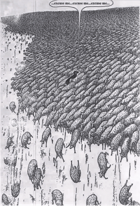 Любой создатель кризисов, владелец «индюшачьей фермы», строит свой успех на проигрыше большинства. При помощи экономической пропаганды, ряда экономических шагов своих и коррумпированных представителей государства он, манипулируя сознанием людей теми же самыми методами, что и простой мошенник, убеждает их делать экономически неразумные действия, формируя «общественное мнение».