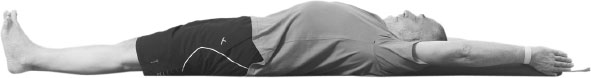 Лягте на спину. Соедините внутреннюю поверхность ног и стоп. Раскройте стопы, удаляя внутренние края стоп от туловища и натягивая внешние края стоп и все пальцы ног на себя. Старайтесь не разводить большие пальцы ног и пятки. Вытяните руки за головой, разворачивая ладони друг к другу. Прижмите к полу запястья и вытяните руки в локтях. Хорошо вытяните руки, ноги и туловище. Держите живот, шею и голову расслабленными. Взгляд, не напрягая глаза, опускайте к полу. Дышите спокойно. Останьтесь в позе 30 секунд – 1 минуту. На выдохе расслабьтесь, отпустите руки и вытяните их вдоль туловища, ладонями к потолку.