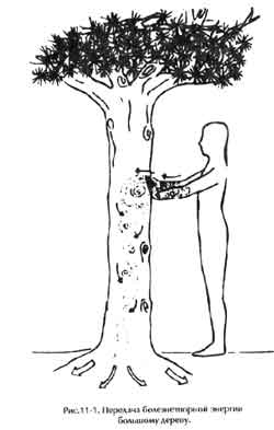 1. Не мойте руки сразу после того, как вы поработали с пациентом. Сначала стряхните руки и сконцентрируйтесь на своем пупке. Почувствуйте, как пупок, руки и ладони становятся теплыми. Если до этого вы практиковали с деревом и имеете с ним связь, вы можете представить себе это дерево и перенести энергию в него. Когда у вас есть реальная возможность прикоснуться к дереву и медитировать на нем, вы можете прямо передать энергию ему (рис. 11-1).
