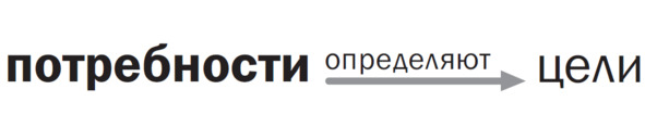 Тренеры по развитию личности часто задают вопрос слушателям: «Сколько вам нужно денег в месяц?» Потом предлагают подписать к сумме несколько нолей. С кем-то такой приём срабатывает, и его доход после тренинга резко повышается. У других доход увеличивается, но заработанное тут же тратится или теряется. У третьих – доход возрастает, но не лично свой, а у членов его семьи. Но большая часть не чувствует изменений и разочаровывается. А происходит так оттого, что количество добавленных нолей у последней группы людей не совпадает с их потребностями. Потребности – это как фундамент, а цели – сруб. Совпадают – появляется дом… «Господь во всеблагой милости своей сделал всё нужное несложным, а всё сложное – ненужным», – учит Григорий Сковорода.6