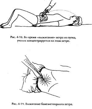 a. Для того чтобы собрать болезнетворную энергию ветра в области Данъ-тяня, примерно на 40 мм ниже пупка, используйте технику "вычерпывания*. Постепенно вы начнете ощущать, как в этой области образуется шарик холодной энергии.