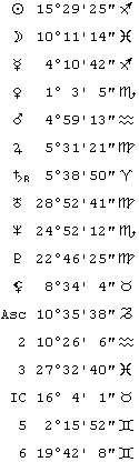 Ну, ладно, посмотрим натальную карту (Рис. 36). После уточнения по дате первого брака получилось время 10 час. 44 мин. 30 сек.