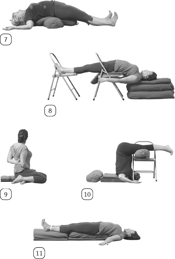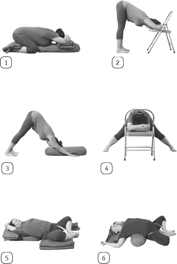 В период менопаузы лучше делать этот комплекс регулярно, не реже одного-двух раз в неделю, чередуя его с Комплексом 1 при менопаузе. Найдите комфортную опору для практики наклонов вперед и прогибов назад, чтобы можно было оставаться в позах по несколько минут. Закончите практику Уджайи пранаямой на вдохе или спокойной, долгой Шавасаной.