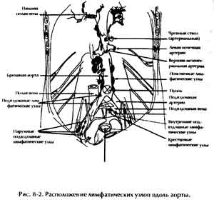 В брюшной полости содержится весьма большое количество лимфатических узлов, и поэтому массаж брюшной полости полезен, поскольку он стимулирует эти узлы и способствует движению по ним лимфы. Непосредственный массаж некоторых лимфатических узлов, в частности тех, которые находятся в брюшной полости, стимулирует процесс детоксикации.