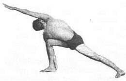 С первого взгляда «стоячие» позы просты и незатейливы, однако это обманчивое впечатление. Эти асаны дают прекрасную начальную гибкость и выносливость. Что же до степени трудности, то, скажем, «Падмасана» или поза «лотоса» имеет у Айенгара коэффициент трудности «четыре», а «Паривритта Парсваконасана» (рис. 15, 16) — «одиннадцать». Так что простота «стоячих» асан мнимая.
