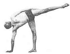 Ноги не напряжены, но натянуты как бы, что делает обе прямые ноги или одну прямую достаточно твердой, вытянутой, как струна. Тут скрыт в общем тонкий момент: если ноги перенапрячь, то напрягается и все тело. Недонапрячь поза не твердая, нет фиксации в форме. Если же ноги именно фиксированно прямые, но не перенапряжены, тогда туловище от пояса до плеч расслаблено и может свободно крутиться вокруг поясницы.