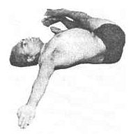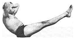 Поэтому лучше все-таки при лордозах начинать с «Ардха Навасаны» (рис. 4). Вся разница между этими позами заключена в точке опоры — в форме на рис. 3 опора на копчик, в форме на рис. 4 — на крестец. Если в позе на рис. 4 трудно закладывать руки за голову, то можно вытянуть их вперед. Если спина в позе на рис. 3 по возможности прямая, то на рис. 4 — максимально ссутулена. Если в позе на рис. 3 руки держать параллельно полу (хотя допустимо опираться, скажем, рукой о пол, если не хватает равновесия), то на рис. 4 — руки закладываются за голову. В форме на рис. 3 работает прямая парная мышца пресса, на рис. 4 — косые мышцы.