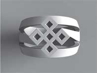 В предложенном образце женской жуковины используется два выгравированных славянских символа: «Семья» и «Ступка», а также камень, по цвету соответствующий моменту рождения супруга (определяется согласно Звездословию в мире Прави).