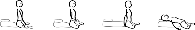• Если вы страдаете от депрессии и гипотонии, при глубокой усталости и отсутствии энергии, положите валик перпендикулярно туловищу и аккуратно лягте так, чтобы небольшой прогиб в пояснице не создавал напряжения в спине. Под затылок положите небольшое сложенное в рулон одеяло. Немного отклоните затылок назад и останьтесь так 2–3 минуты. Затем согните ноги в коленях, повернитесь на правый бок и сядьте.
