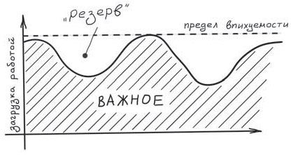 Неприязнь к простоям приводит к тому, что, как только из-за флуктуаций у нас образуется резерв, скажем, «один мозговатт-час в неделю», мы тут же думаем, как бы его обязательно использовать, потому что не использовать его — «неэффективно».