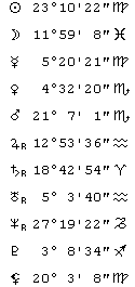 Теперь посмотрим транзиты на 0 часов 16.09.1997 GMT.