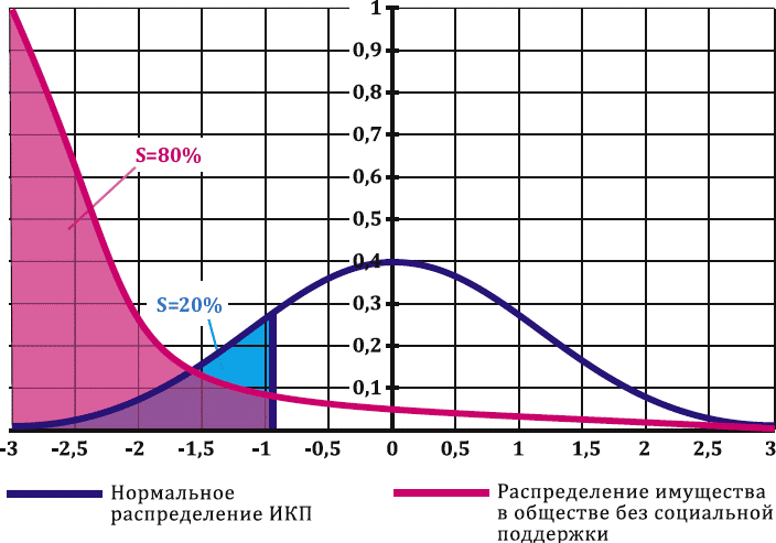 Если попробовать соотнести последнее из правил графически с Гауссовым распределением Интеллектуального капитала предпринимателя, то картинка получится следующей.