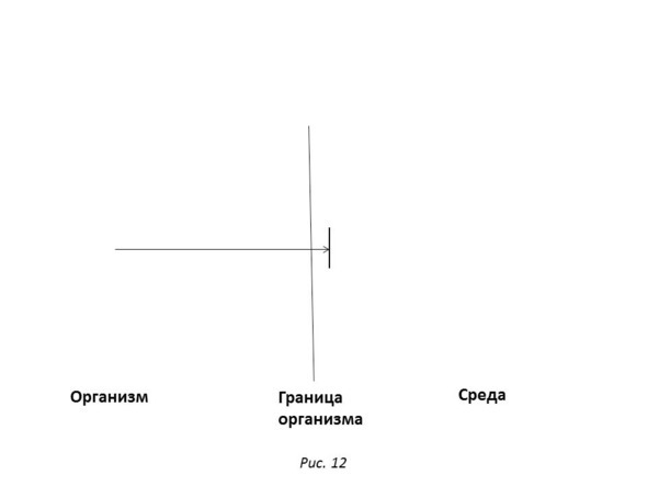 Эготизм можно описать как сверхконтроль над спонтанными действиями. Отчасти этот механизм близок к ретрофлексии. Но если при ретрофлексии импульс вообще не выходит на контактную границу, а разворачивается на себя, то при эготизме, хотя и происходит взаимодействие со средой, действия подвергаются тщательному наблюдению и сдерживанию (рис. 12).