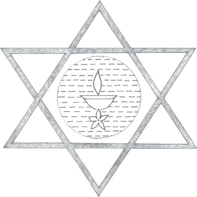 Используя рисовую муку или какую-нибудь крупу, нарисуйте на земле фигуру, подобную приведенной ниже. Поместите в центр блюдо, наполните его водой, в воду поставьте горящую масляную лампу и положите цветок. Вы создали геометрическую форму, используя воду, огонь и воздух. Цветок в воде представляет собой землю. Акаш, или эфир, естественным образом присутствует всегда.