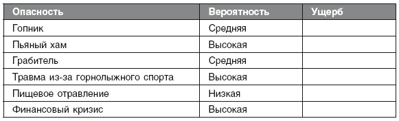 В итоге должна получиться таблица. В левом столбце вы перечисляете «свои» опасности, в следующем – их вероятность.