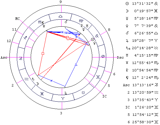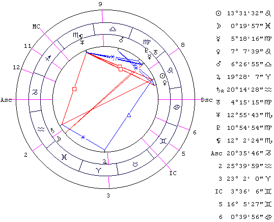 После ректификации по дате 1-го брака получилась натальная карта в г. Выру на 20 часов 20 мин. 11 сек. (см. Рис. 32)