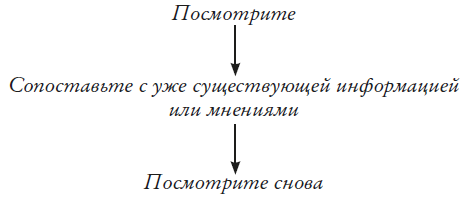 Не бросайтесь к истории болезни, идите сразу к пациенту. Как он выглядит? Какова его реакция на вас? Применяйте тот же принцип к любой форме, оценке или стандартизированному отчету в любой области. Не позволяйте ограничивать себя. Ваше первоначальное наблюдение должно быть максимально беспристрастным и непредвзятым. Если менеджер, анализирующий пунктуальность или производительность работника, четко следует некоему бланку, он может прозевать другие важные аспекты – например одежду, манеру поведения или язык тела. Не зацикливайтесь на списке. Сосредоточение внимания на заданных ориентирах и проставлении галочек заведомо препятствует всестороннему и точному анализу.