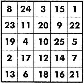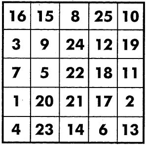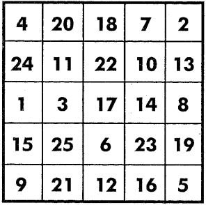 Если вы решили заняться развитием своего внимания более серьезно, то потренируйтесь в выполнении еще одного хорошего упражнения, способствующего развитию как немедленного, так и длительного сосредоточения. Для выполнения этого упражнения вам понадобится помощник. Представьте мысленно таблицу 5x5, такую, как изображена на рисунке 2. В верхнем левом углу этой таблицы представьте шашечку или любую другую фигурку. Закройте глаза и передвигайте эту шашечку на позиции, которые вам укажет ваш помощник. Например: два шага вниз, три шага направо, один вниз, два налево, один шаг вверх и т.д. В результате вам надо сказать, где оказалась шашечка после всех перемещений.