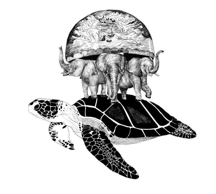 Пространство, в котором плывет черепаха, — бесконечный мир идей, образов и смыслов вокруг нас.
