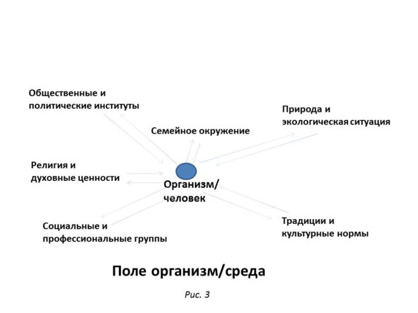 Среда обитания отдельной личности включает семейное и ближайшее социальное окружение, отношения с терапевтом или в терапевтической группе, культуру, традиции, политический режим и экономическую ситуацию, климат, экологию и многое-многое другое (рис. 3).