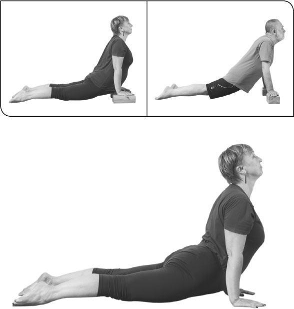 • Чтобы не создавать нагрузку на нижнюю часть спины, учитесь прогибать позвоночник от его основания, т. е. от копчика. Для этого направляйте копчик вперед, к лобку, и тяните всю переднюю поверхность позвоночника вверх. Если при выполнении позы вы испытываете регулярную боль в области поясницы и крестца, обратитесь к опытному преподавателю.