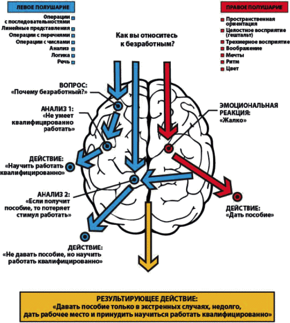Красная линия «безработный» – эмоциональная реакция: «жалко». Действие: «дать пособие».