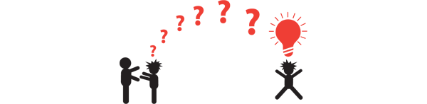 Хороший способ поиска идей — задавать вопросы. Проблема в том, что мы боимся спрашивать, потому что не хотим выглядеть глупо. Но если нам нужны новые идеи, то еще глупее не задавать вопросов. Ричард Вурман, очень изобретательный дизайнер, говорит: «Вопросы двигают всю мою работу». Ученый Роберт Деннард утверждает, что ученые всегда задают вопросы. Роберт внес гигантский вклад в разработку персональных компьютеров, изобретя динамическую память с произвольным доступом, а идеи свои он почерпнул, по его словам, из произвольного динамического задавания вопросов. Человек всегда ставит вопросы лучше, чем компьютер. Как сказал легендарный Пикассо: «Компьютеры бесполезны. Они могут только отвечать на вопросы».