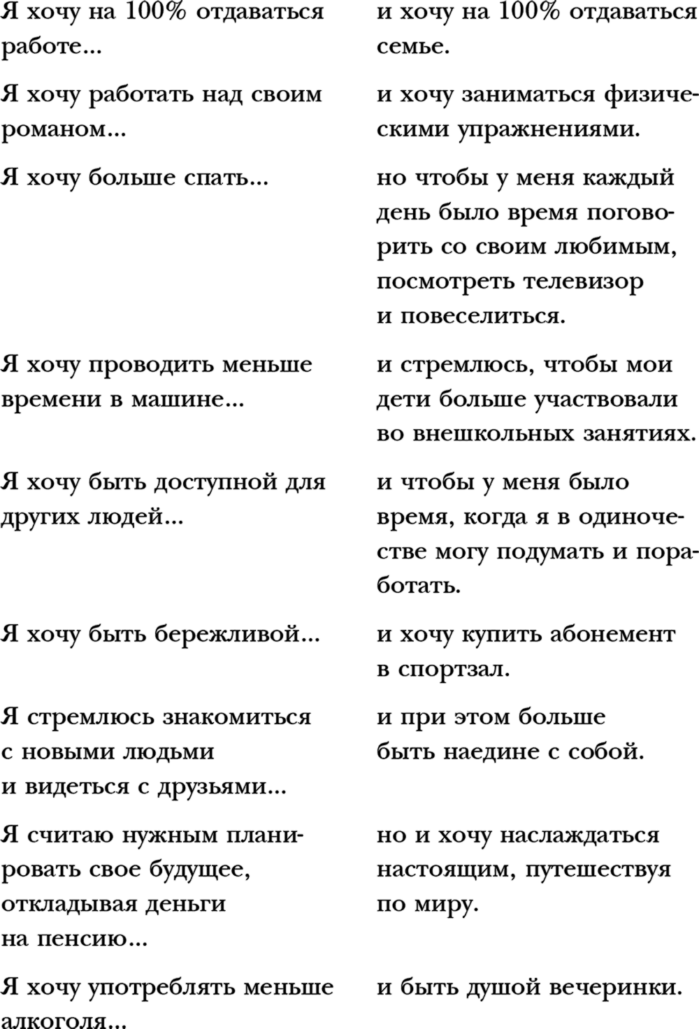 Когда я разговаривала с людьми о привычках и счастье, то и дело возникали определенные пары конфликтующих ценностей: