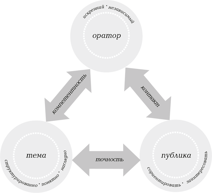 Если вы будете ориентироваться на эти три критерия, то у вас есть все шансы на успех при вашем следующем выступлении. Схема ниже показывает связь между ними.