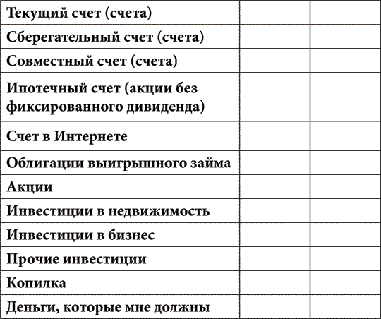 А теперь заполните третий столбец таблицы точными данными, проверив соответствующие документы или счета. Для некоторых людей получение точных цифр может означать наведение порядка в ящиках, в которых полно старых бумаг.