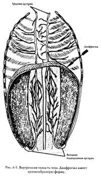 Во время брюшного дыхания диафрагма опускается, оказывая давление на жизненно важные органы и заставляя их сжиматься. Это позволяет заполнить воздухом нижние доли легких и выпятить живот. Грудная клетка и грудина опускаются. Во время выдоха желудок опять становится более плоским, и все остальные жизненно важные органы тоже восстанавливают прежние размеры и форму (рис. 6-2),